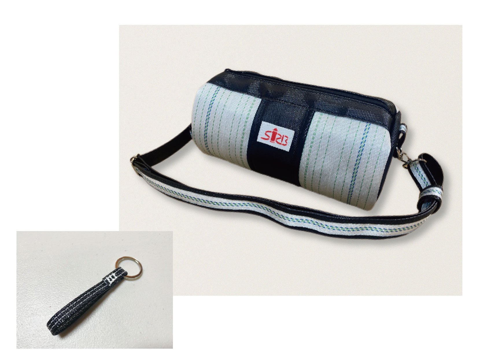 [20-51] 消防ホース製 白黒ドラム型バッグとキーホルダー 寄付金額 20,000円