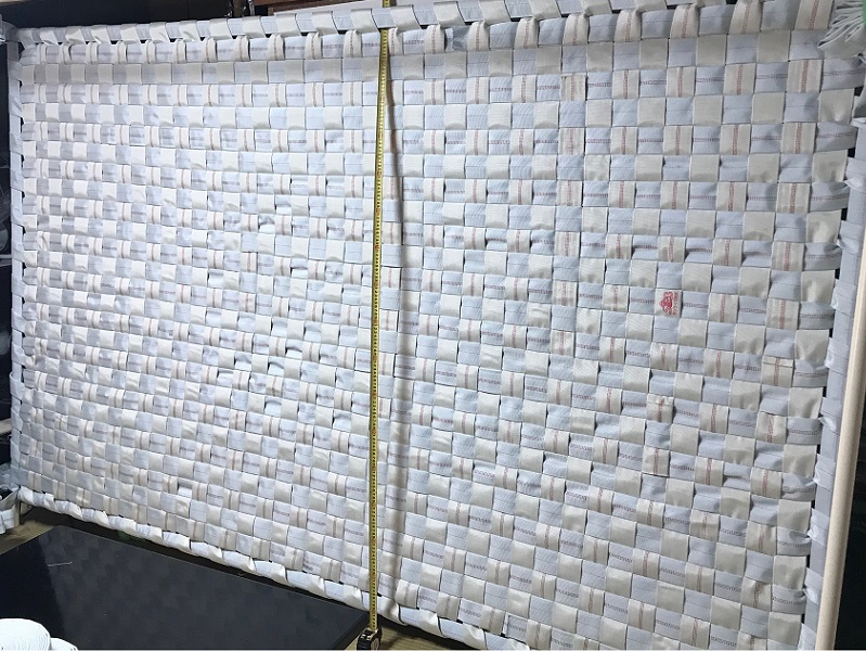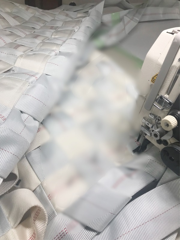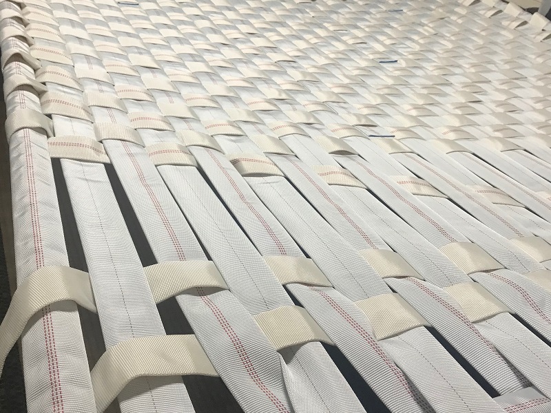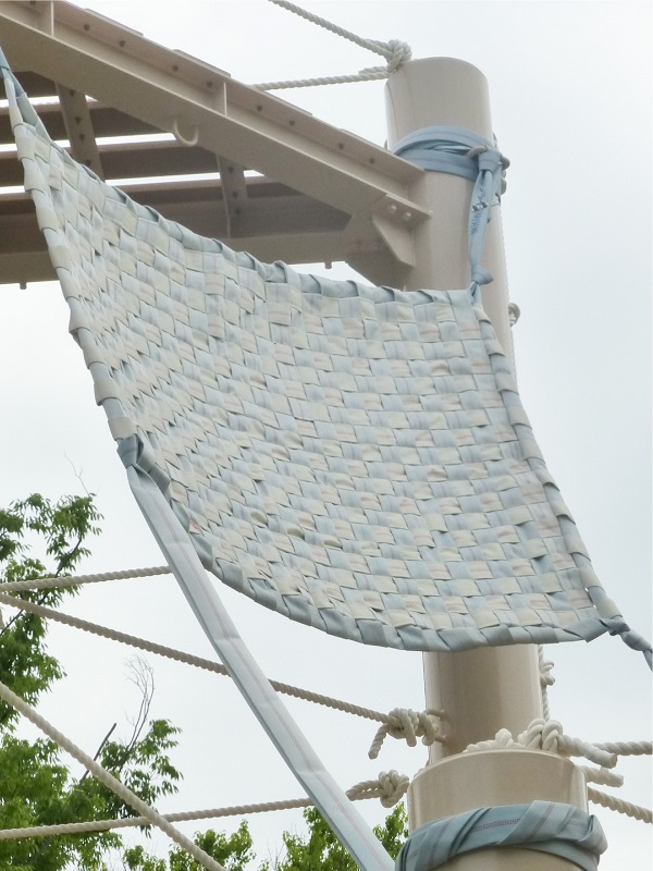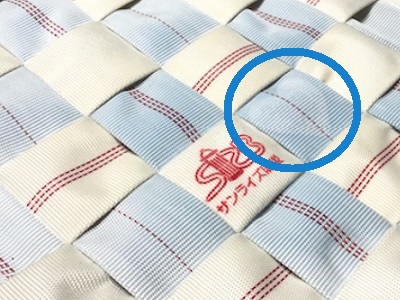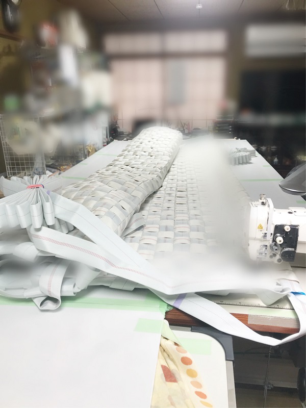縦糸に使用したホースは濡れるとほんのり水色になるので、
