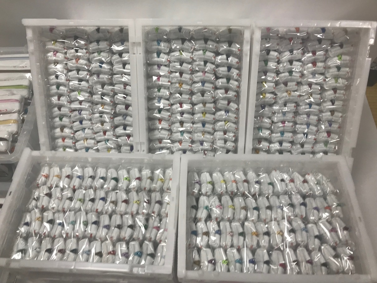 商品にはロゴやイラスト等を一つ一つ手作業でお入れしております。
