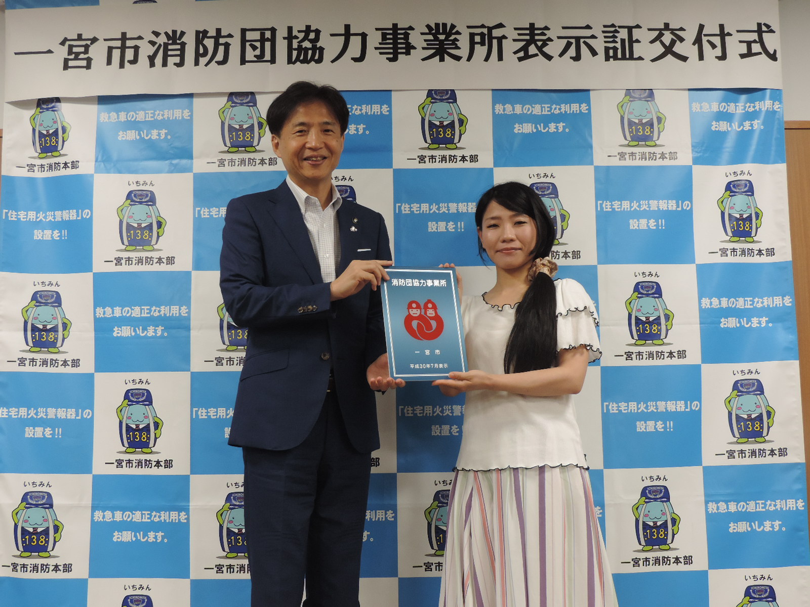 一宮市消防団に積極的に協力している事業所として認定されました。